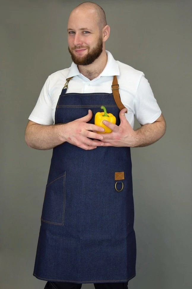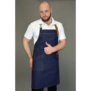 Фартук джинсовый поварской / официантский с нагрудником Lux-Form ЛЕВИС кожа синий 103088