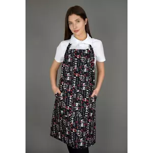 Фартук форма "трапеция",с нагрудником .Имеет шейный хлястик с пластиковым регулятором ,с помощью которого можно регулировать длину фартука.