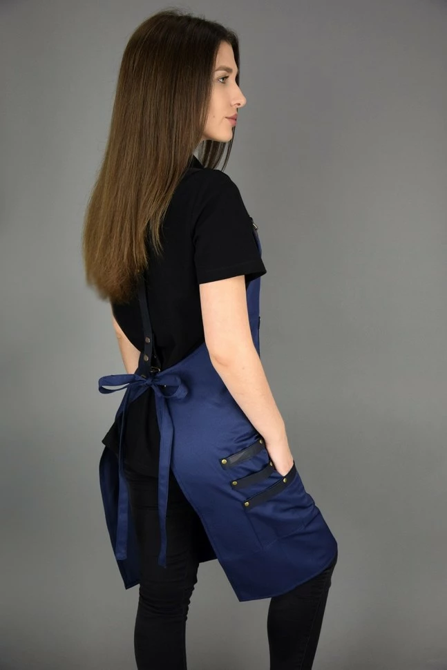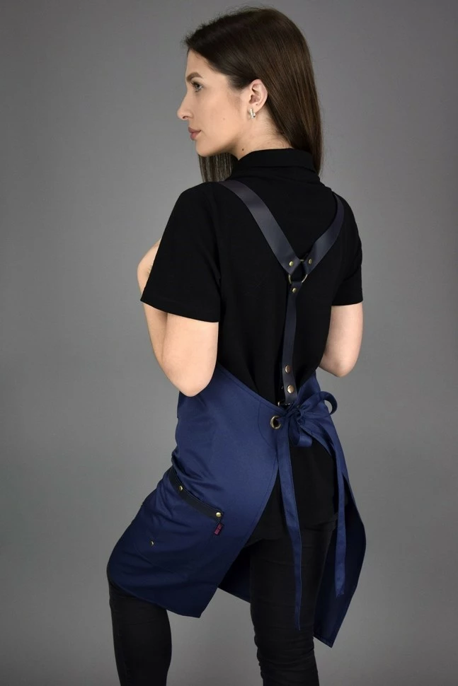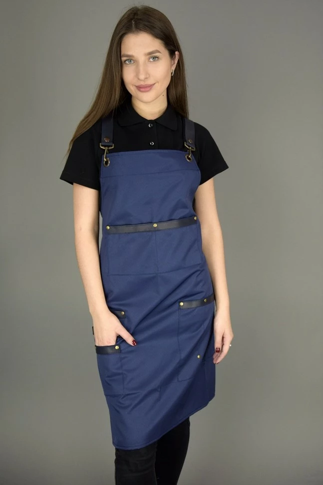 Фартук с нагрудником поварской/официантский синий "Кожа"