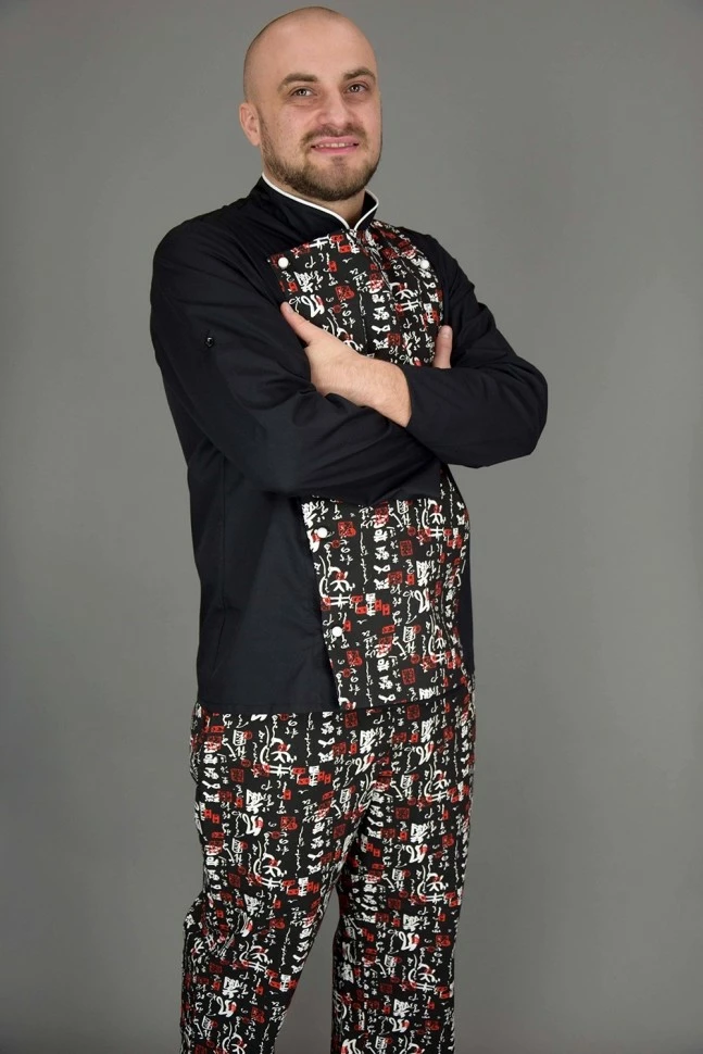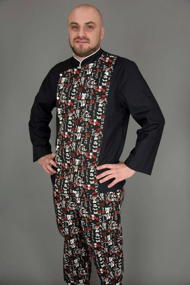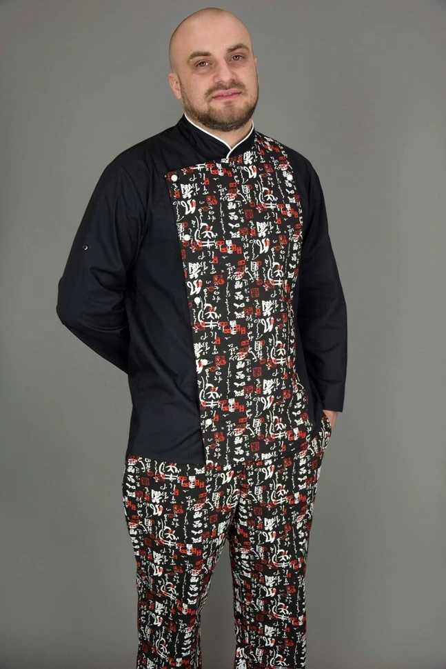 Китель поварской Lux-Form Иероглифы черный 102488
