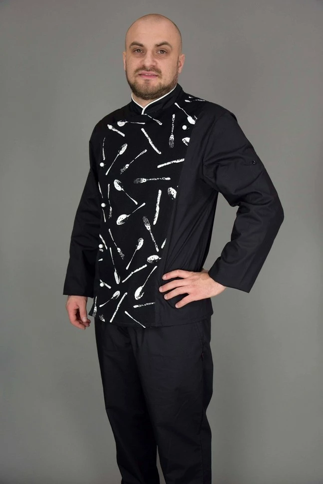 Китель поварской Lux-Form Вилка черный 10974