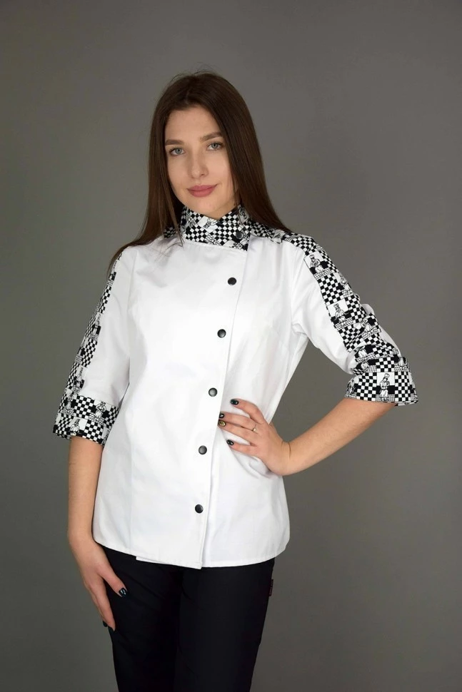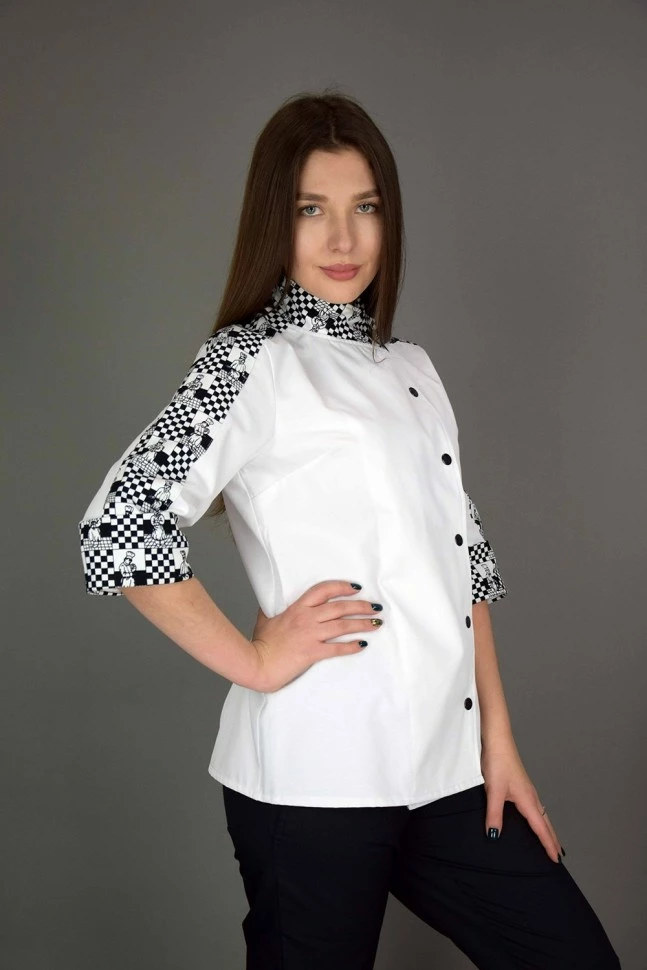 Поварской женский китель, белого цвета. Рукав 3/4, застежка