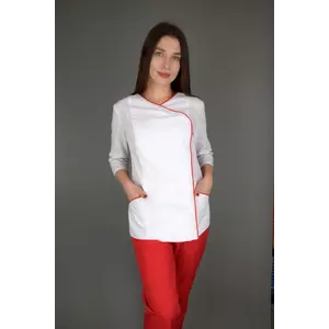 Кофта приталенного кроя с контрастным кантом красного цвета.